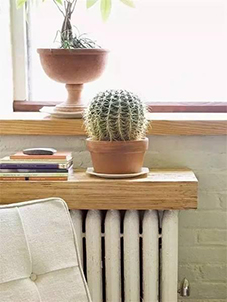 四、加裝臺面。在暖氣上加裝木板或釘一個木臺面。既能做書架或擺臺,一個特別的玄關(guān)就出來了
